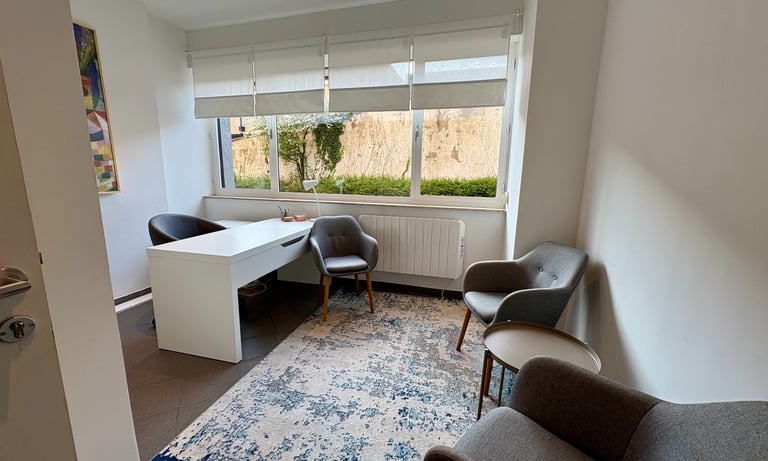 I offer discreet, personalised consultations in Ixelles (Medical Center Tenbosch-Châtelain), in a space designed for calm, discretion, and structured work.